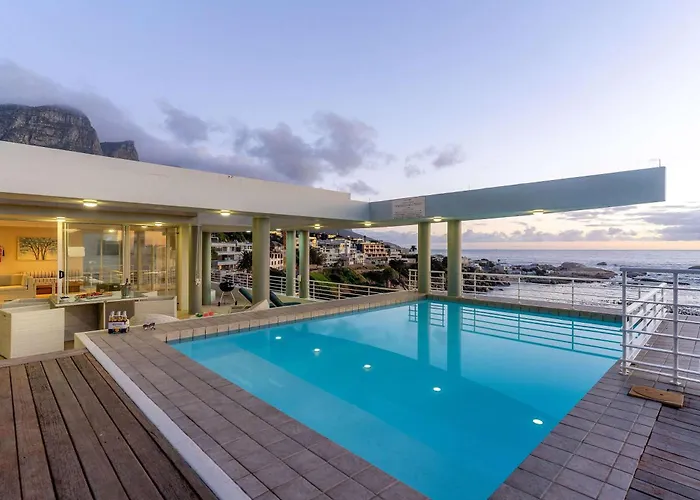 Sunset Azure Villa - Sea Views Sleeps 14 2 Pools Cape Town is located a mere 6 minutes on foot from the Beta Beach and features a private swimming pool and a terrace for a relaxing stay. Offering Wi-Fi, the beachfront villa is located 3.3 km from the Twelve Apostles.
